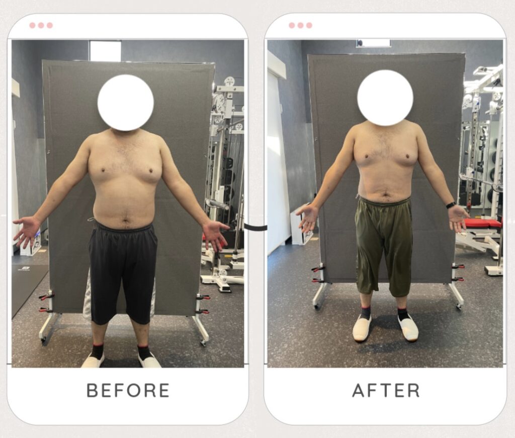 体重は初来店時のジャスト100kgから95kgへ減、見た目としてもお腹周りがかなりスッキリした印象ですね!